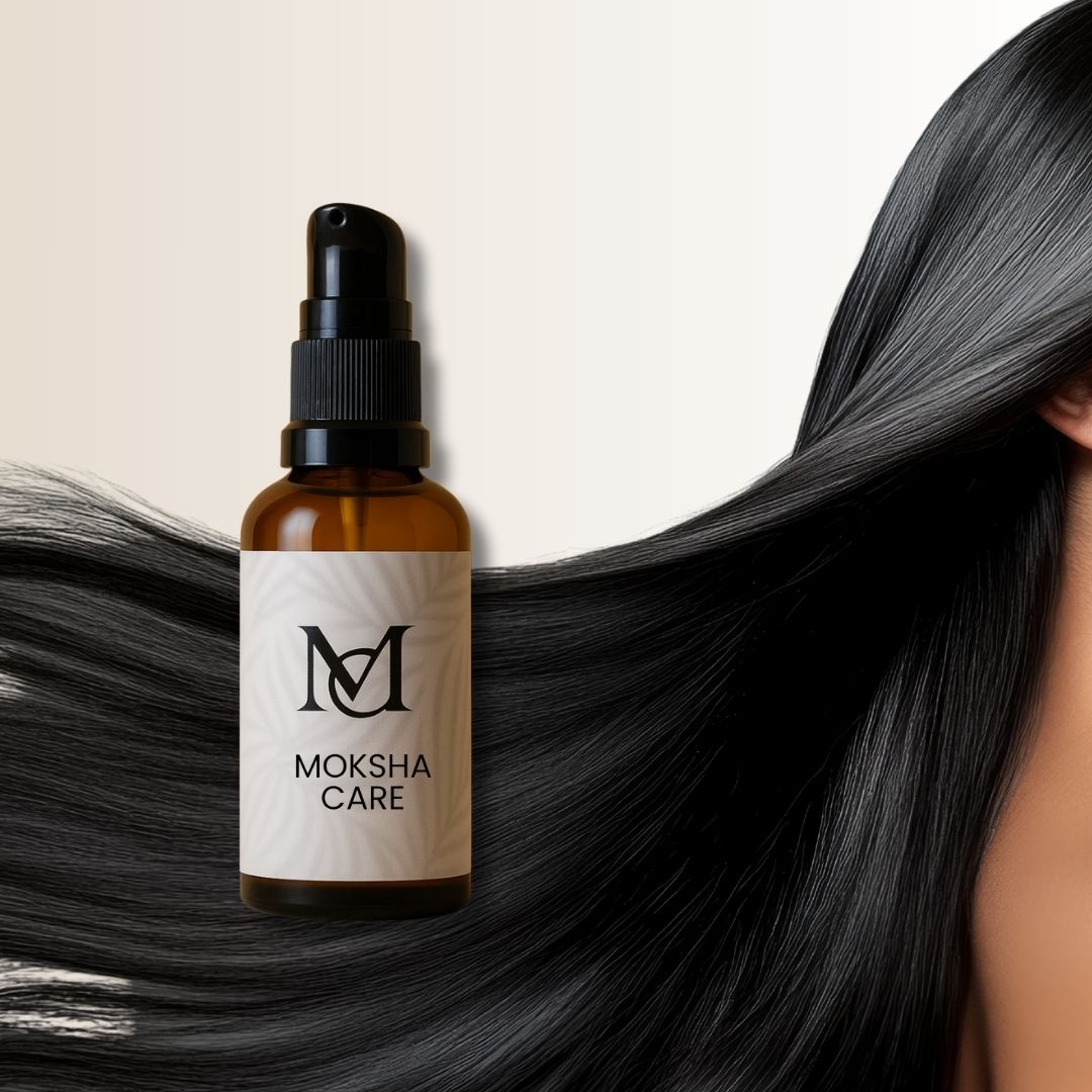 Sérum capilar ayurvédico 100% natural com infusão de Amla, Bhringraj, Alecrim e óleos nutritivos como coco, rícino e linhaça. Estimula o crescimento, combate a queda, previne fios brancos e hidrata profundamente. O segredo milenar para cabelos bonitos e fortes, agora na tua rotina.